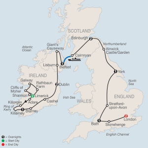 You’ve seen photos of London’s Big Ben—now’s your time to see it in person. You’ve heard about Dublin’s friendly culture—now’s your time to experience it. You’ve read William Shakespeare’s plays—now’s your time to visit his birthplace in Stratford-upon-Avon. You’ve heard of the ill-fated Titanic—now’s your time to travel to Belfast and learn about how it was built. You’ve seen photos of Stonehenge—now’s your chance to stand in front of it. You’ve seen photos of Edinburgh Castle—now’s your chance to see it. All of this—and much more—are included on this Ireland, Scotland and England tour. Your tour starts in Limerick, Ireland and ends in London, England. In between, you’ll see breath-taking landscapes, visit historical sights, see the famous landmarks, and learn about the cultures and histories of these countries. You’ll overnight in Limerick, Killarney, Dublin, Belfast, Edinburgh, York, Bath, and London.